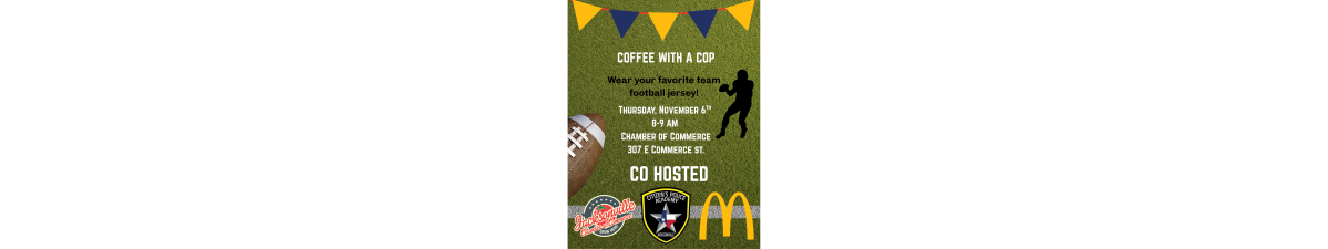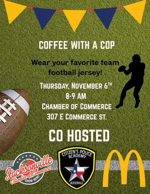 Stop by the Chamber office for Coffee with a Cop! Great conversations, networking, coffee & breakfast provided! Free to attend! Coffee provided by McDonalds